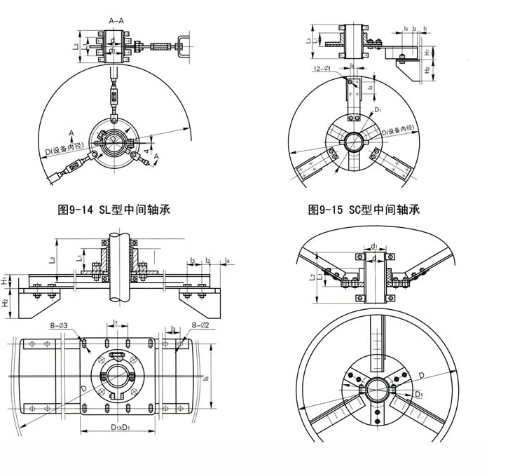 注:重量仅供参考,与设备内径D有关,SD适用于中间轴承位置高度在上封头范围的情况,用户提高高度位置及封头图形,本公司可以供应定位杆拉杆构件。 |