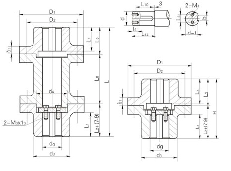 2、DT型刚性凸缘联轴器高度尺寸H(其余尺寸同DF型)