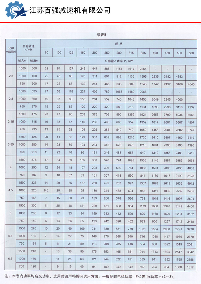 (1)输入转速一般n、≤1500r/min.