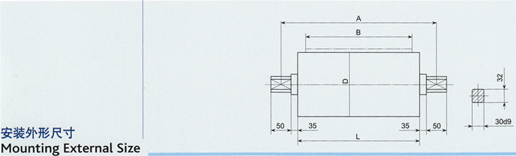 DY1型油浸式电动滚筒安装外形尺寸表