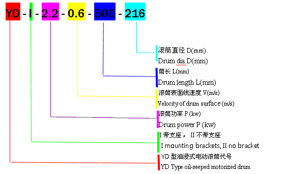 YD型油浸式电动滚筒订货代号