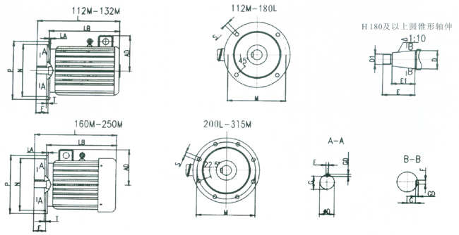 一、YZ112-250 IM1安装尺寸与外形尺寸