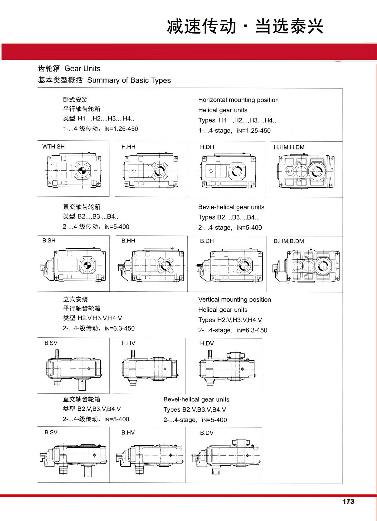 7、 H、B系列产品有3~26型规格,减速传动级数有1~4级,速比1.25~450。