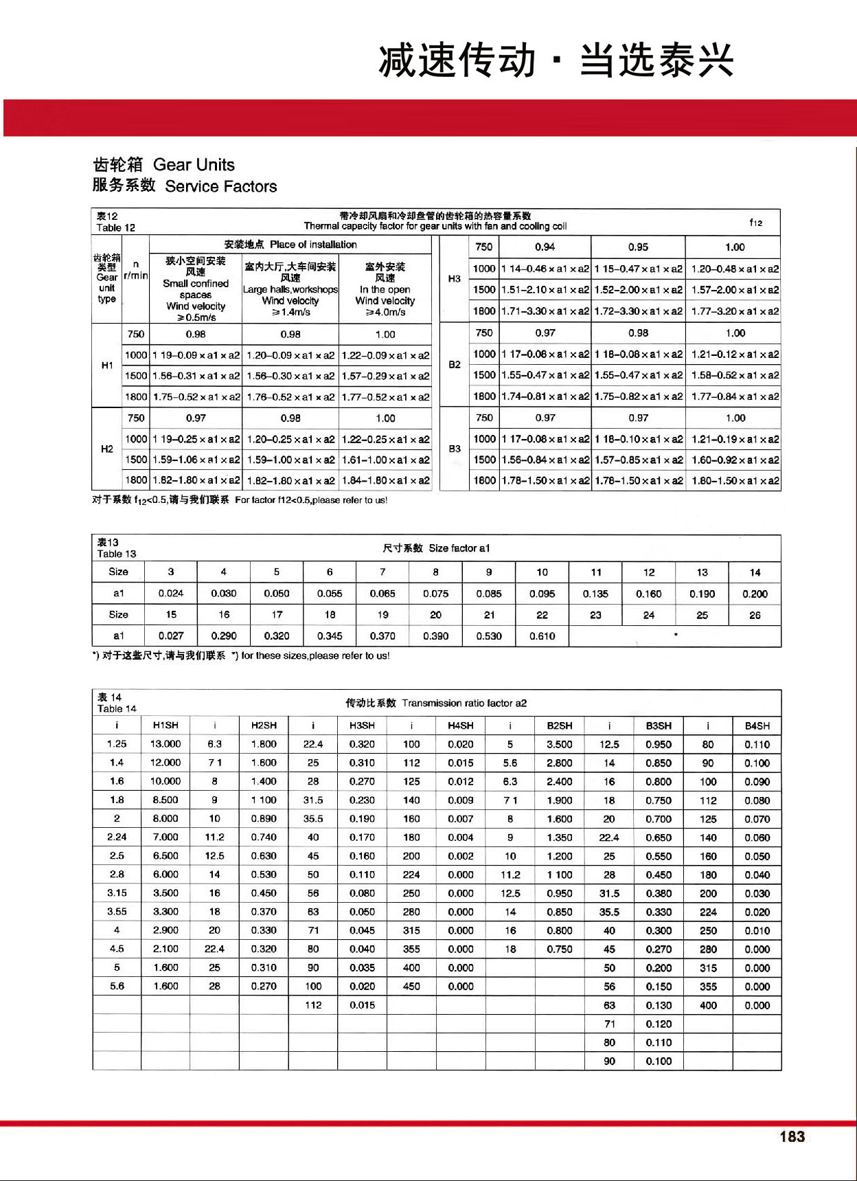 7、 H、B系列产品有3~26型规格,减速传动级数有1~4级,速比1.25~450。
