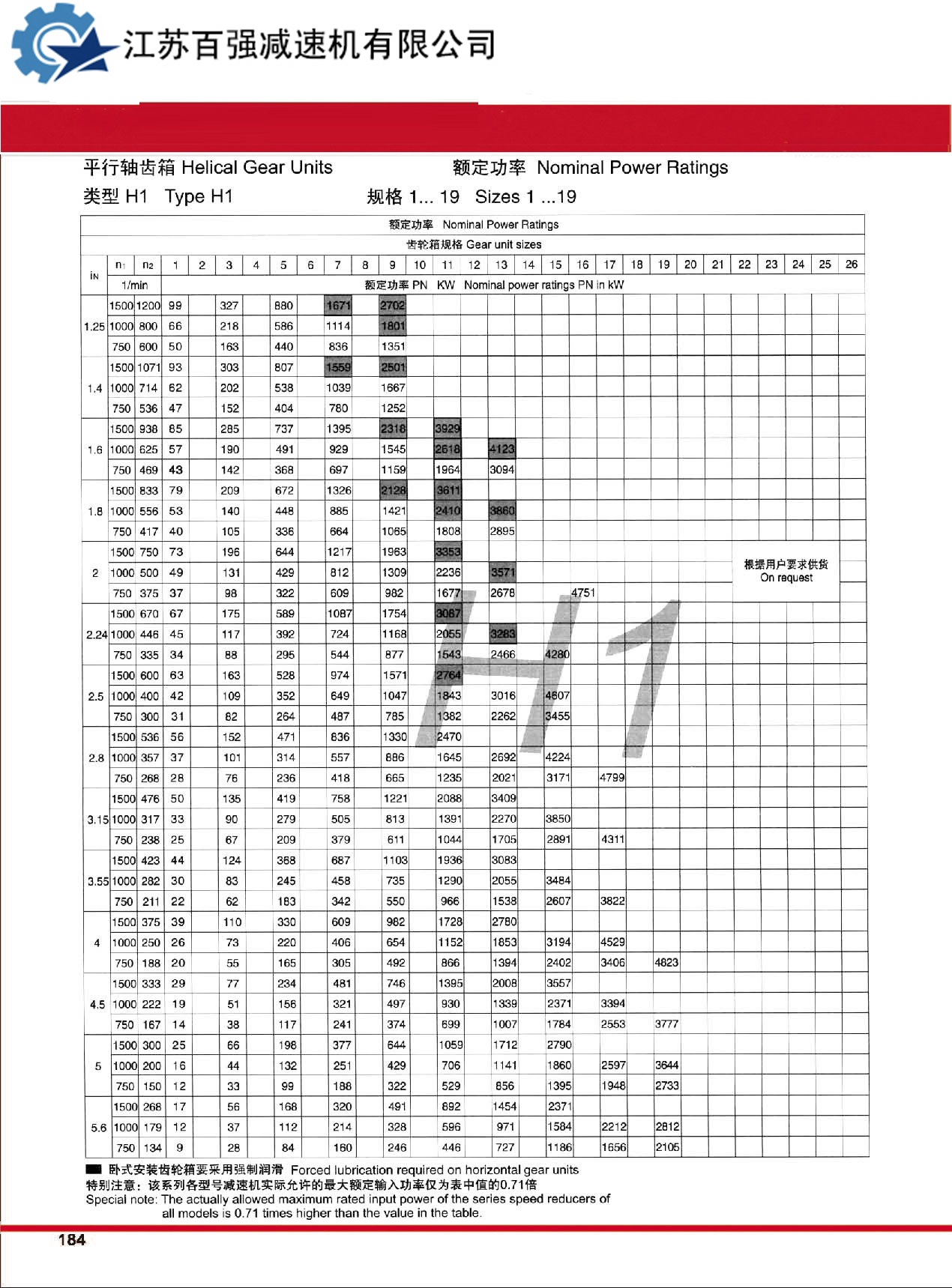 7、 H、B系列产品有3~26型规格,减速传动级数有1~4级,速比1.25~450。